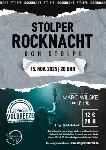 Das Konzertjahr in Stolpe startete nach einer kleinen Sommerpause mit einem besonderen musikalischen Leckerbissen in den Herbst. Am Samstag, den 20. September 2025 um 20 Uhr spielte die Hörbie Schmidt Band erstmals im Stolper DGH!