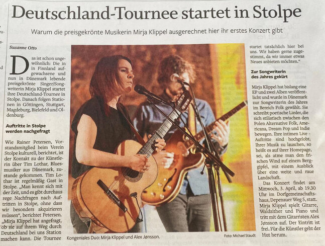 Der Vorsitzende von STOLPEkulturell, Matthias Stührwoldt, stellte die beiden Musiker aus Dänemark vor, obwohl gerade Tim Lothar den Stolpern von vielen früheren Auftritten bekannt ist.