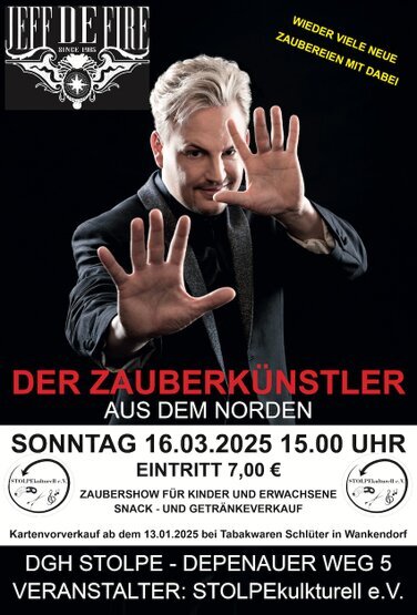 Nach dem magischen Erfolg der beiden ersten Auftritte im Jahr 2023 (2x ausverkauft) erleben wir erneut eine großartige Show von JEFF DE FIRE aus Kiel.