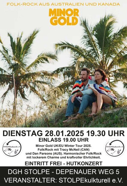 Das kraftvolle Folk/Rock-Duo Minor Gold besteht aus Tracy McNeil (CAN) und Dan Parsons (AUS). Zusammen liefern sie harmonischen Folk/Rock mit lockerem Charme und kraftvoller Ehrlichkeit.