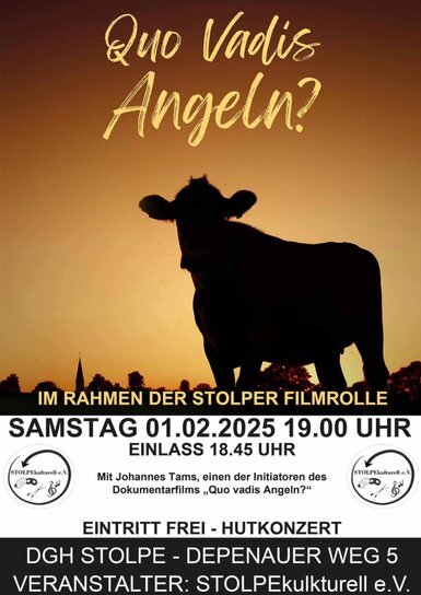 Am Samstag, den 1. Februar um 19 Uhr wird es im Dorfgemeinschaftshaus Stolpe mal wieder eine besondere Filmvorführung geben. Wir haben Johannes Tams, einen der Initiatoren des Dokumentarfilms „Quo vadis Angeln?“, gewinnen können, uns an diesem Abend den Film zu zeigen und anschließend für ein Publikumsgespräch zur Verfügung zu stehen. Der Eintritt ist frei; für Johannes geht am Ende des Abends der Hut rum.