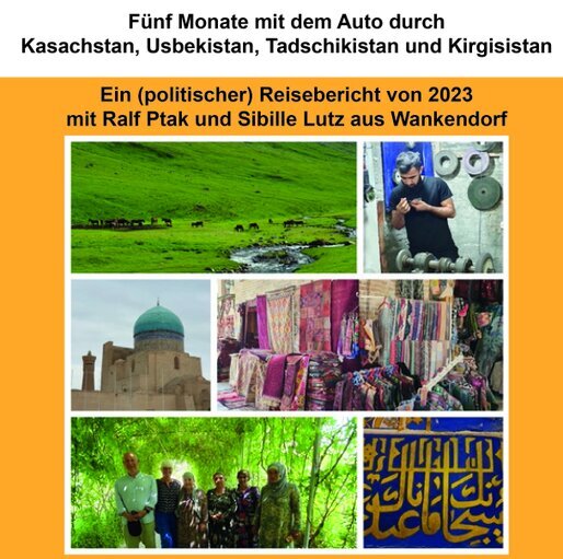 Es war ein lang gehegter Wunsch, den Sibille Lutz und Ralf Ptak dann 2023 in die Tat umsetzen konnten: Eine selbstorganisierte Reise mit dem eigenen Fahrzeug nach Zentralasien, genauer gesagt: Fünf Monate durch Kasachstan, Usbekistan, Tadschikistan und Kirgisistan mit einer langen An- und Rückreise durch Skandinavien und Russland, insgesamt 23.000 km. Diese sogenannten Stan-Staaten sind verbunden mit den Bildern der alten Handelsrouten der Seidenstraße, der ersten Globalisierung weit vor der Hanse und den italienischen Stadtstaaten. Zentralasien ist aber auch die Brücke zwischen Europa und dem aufsteigenden Osten, der mit China an der Spitze eine neue Weltordnung im 21. Jahrhundert prägt.